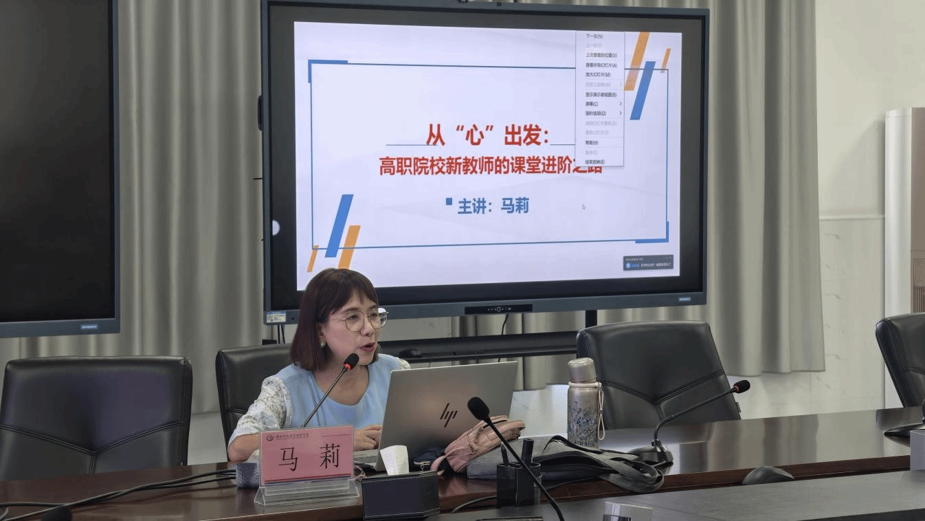 讲座中,马莉老师围绕课堂教学设计、教学方法创新、信息化手段融合、教学反思与成长等方面展开深入讲解。她以“从心出发”为主线,引导教师回归教育初心,关注学生成长,提升课堂感染力与教学实效。