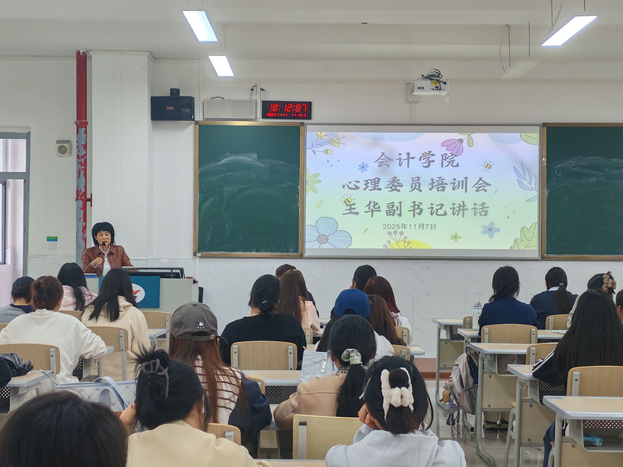 心理委员培训会与宿舍长培训会的开展,夯实了班级与宿舍层面的心理工作基础,推动形成“学校统筹、学院组织、班级落实、宿舍排查”的四级联动闭环。今后,会计学院将持续完善心理健康教育体系,通过常态化培训、一对一督导、主题班会等多种形式,提升学生骨干的心理服务能力,为全院学生的身心健康保驾护航,营造积极健康的校园氛围。