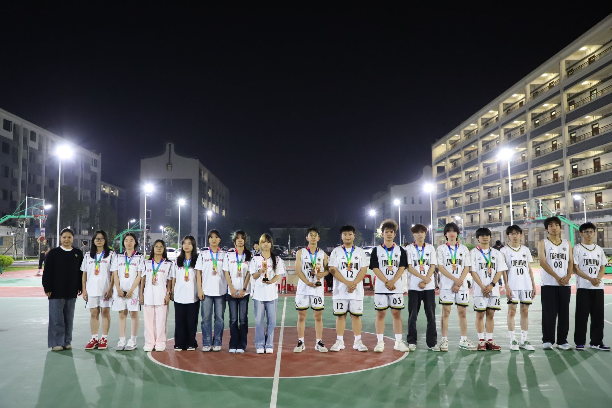 随着裁判一声哨响,决赛正式拉开战幕。晋级决赛的队伍迅速进入竞技状态,双方队员配合默契,攻防转换间尽显专业素养。精准的三分远投、凌厉的快攻反击、严密的联防布控,一次次将比赛推向高潮。赛场边,呐喊声、助威声此起彼伏,热烈的氛围点燃了整个球场。队员们顶着高强度对抗,凭借顽强的毅力和出色的战术执行,为在场师生献上了一场酣畅淋漓的篮球盛宴。