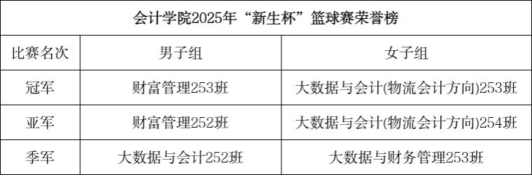 此次“新生杯”篮球赛不仅为新生搭建了展示自我、切磋球技的平台,更在竞技中锤炼了团队协作与永不言弃的体育精神,为会计学院校园文化建设注入了青春活力。未来,会计学院将持续丰富校园文化活动,助力学子在德智体美劳全面发展的道路上稳步前行。