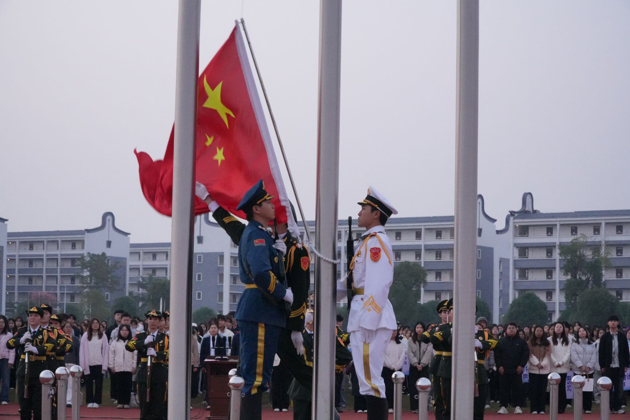 激昂的《义勇军进行曲》划破清晨的静谧,鲜艳的五星红旗在晨光中冉冉升起,全体师生肃立行注目礼,胸中涌动的爱国情怀与时代责任感愈发炽热。