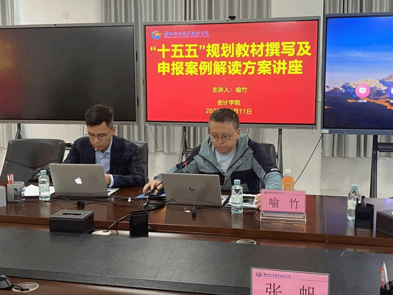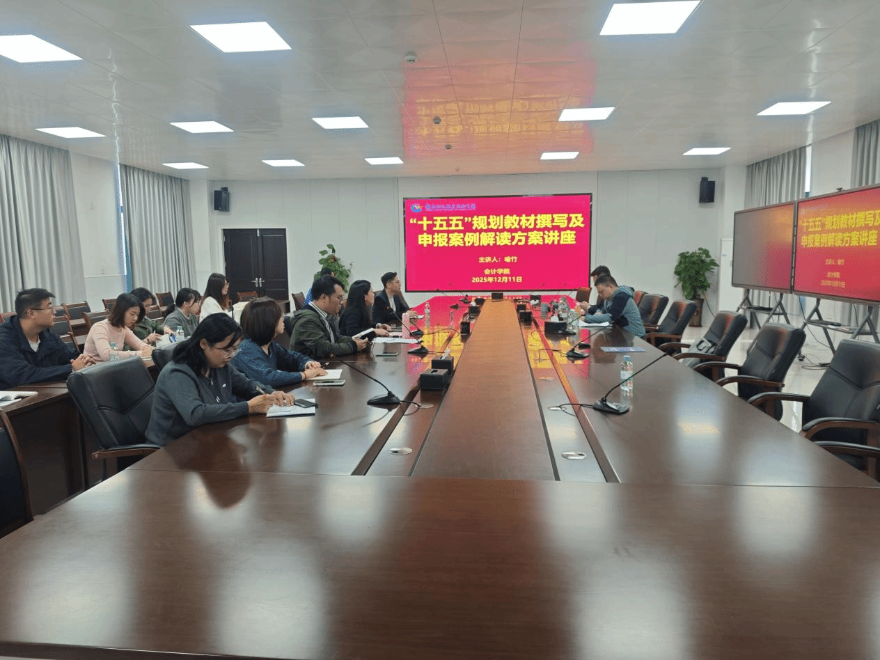 12月11日上午,为进一步拓宽学校教师掌握写作规范及申报工作提升路径,提升教材撰写及申报案例能力,会计学院特邀遵义职业技术学院喻竹教授开展“十五五”规划教材撰写及申报案例解读专题讲座。喻竹教授作为第一主编,曾编写“十三五”、“十四五”职业教育国家规划教材累计11部,参与教育部职业教育(2021版)高职《统计与大数据分析专业教学标准》和1+X 智能审计职业技能等级证书标准制定。会计学院院长张帆、副院长张秋霞出席讲座,会计学院全体专任教师、《人工智能概论》《物流系统规划与设计》教材编写组成员及其他学院对教材建设感兴趣的教师共同参与。