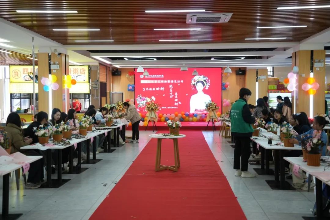 春拂三月繁似锦,巾帼笑靥迎彩节。为进一步丰富精神文化生活,在第114个国际劳动妇女节来临之际,2024年3月7日,我校学生工作部(处)、校团委联合港北区疾控中心开展“花漾女神,玩美时光”为主题的非遗文化簪花体验暨插花活动。学院党委副书记、工会主席杨一笔,学生工作部(处)部长林锋,校团委书记党宇波及在校女老师、女同学参加活动。